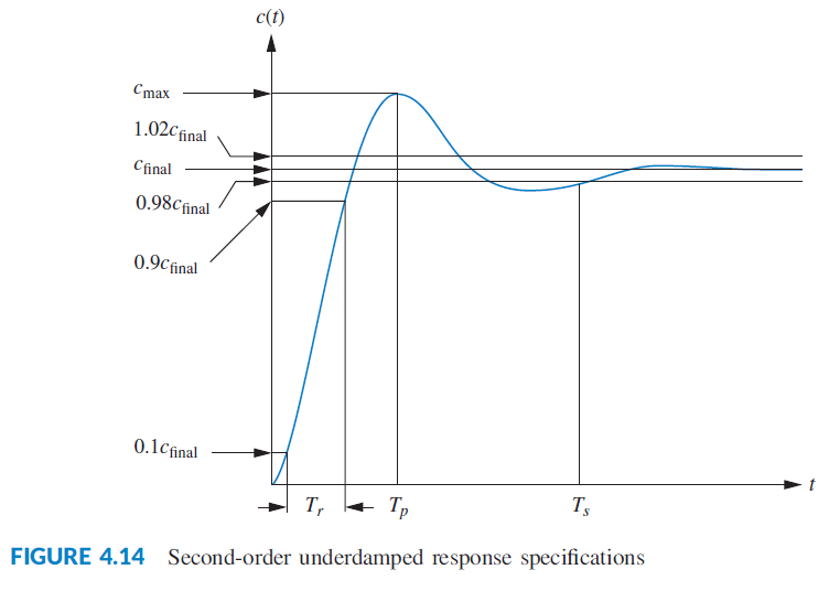p \sqrt{1-\zeta^2} &= e^{-4} &&T_s = \frac{4}{\zeta \omega_n} \\